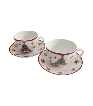 Sada dvoch šálok s podšálkami CHRISTMAS TREE 3, ktorá je súčasťou vianočnej kolekcie, je vyrobená z porcelánu New Bone China, ktorý sa vyznačuje elegantnou a prírodnou krémovo-bielou farbou s jemným leskom a zároveň výnimočnou odolnosťou.