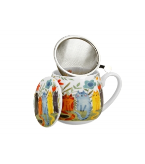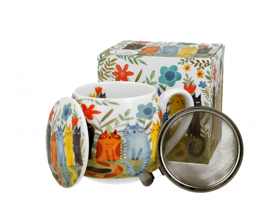 Hrnček Koci Świat GARDEN CATS s objemom 430 ml, nálevníkom a viečkom, ktorý je súčasťou série Animals, je vyrobený z porcelánu New Bone China, ktorý sa vyznačuje elegantnou a prirodzenou krémovo bielou farbou s jemným leskom a zároveň výnimočnou odolnosťou.