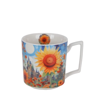 Hrnček SUNFLOWER z kolekcie MODERN, vyrobený z porcelánu New Bone China, charakterizovaný elegantnou a prirodzenou krémovo-bielou farbou s jemným leskom a výnimočnou odolnosťou pri zachovaní ľahkosti a krehkosti.