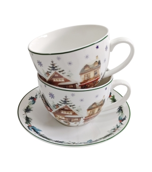 Táto sada dvoch šálok a podšálok CHRISTMAS VILLAGE, ktorá je súčasťou vianočnej kolekcie, je vyrobená z nového kostného porcelánu (New Bone China), ktorý sa vyznačuje elegantnou a prírodnou krémovo bielou farbou s jemným leskom a zároveň výnimočnou odolnosťou.