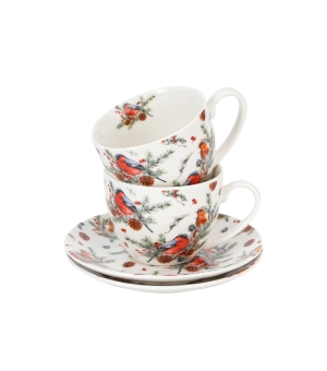 Sada dvoch šálok s podšálkami CHRISTMAS BIRDS, ktorá je súčasťou vianočnej kolekcie, sa vyznačuje prírodnou krémovo bielou farbou s jemným leskom a výnimočnou odolnosťou, pričom si zachováva ľahký a elegantný pocit.
