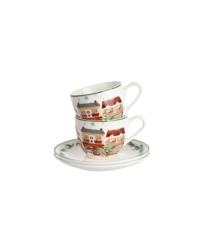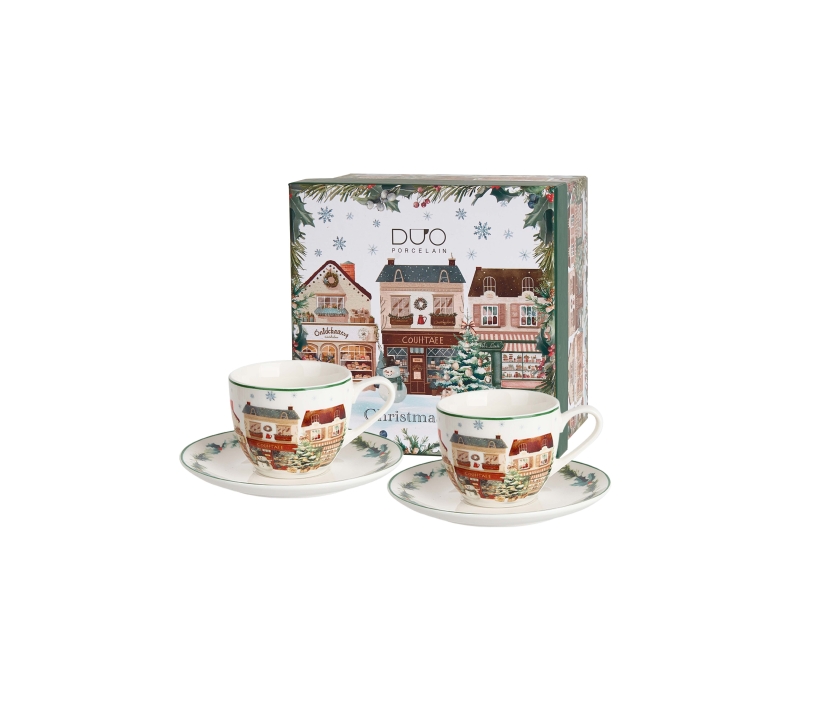Táto sada dvoch šálok a podšálok na espresso CHRISTMAS CITY 2, ktorá je súčasťou vianočnej kolekcie, je vyrobená z nového kostného porcelánu (New Bone China), ktorý sa vyznačuje elegantnou a prírodnou krémovo bielou farbou s jemným leskom a zároveň výnimočnou odolnosťou.