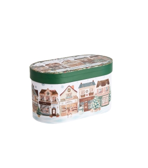 Túto kolekciu zdobí očarujúci motív maľovaných mestských domov, ktorý vytvára teplú a útulnú atmosféru. Trblietavé hviezdy, snehuliak a krásne ozdobený vianočný stromček vytvárajú jedinečnú a magickú atmosféru. Jemný rám z vetvičiek cezmíny dodáva typické prvky sviatočnej výzdoby.