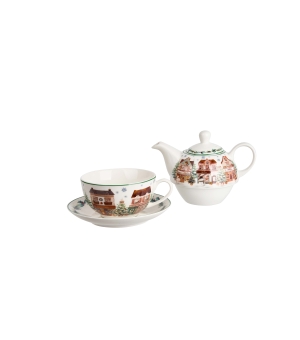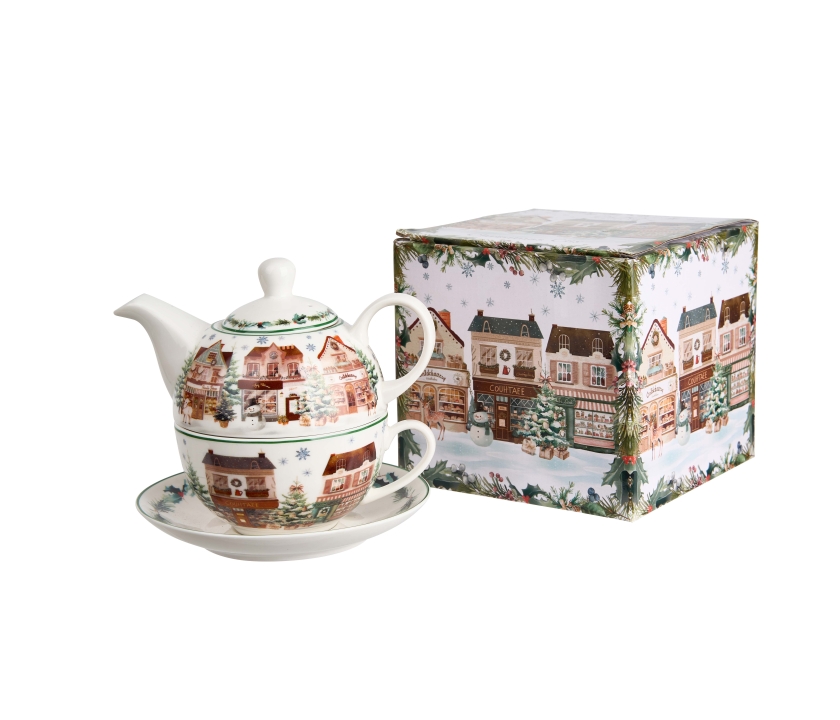 Sada 2 šálok a džbánov CHRISTMAS CITY je súčasťou vianočnej kolekcie vyrobenej z porcelánu New Bone China, ktorý sa vyznačuje elegantnou a prírodnou krémovo bielou farbou s jemným leskom a zároveň výnimočnou odolnosťou.