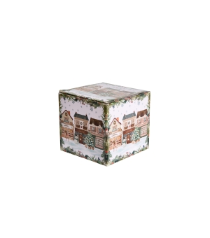 Túto kolekciu zdobí očarujúci motív maľovaných mestských domov, ktorý vytvára teplú a útulnú atmosféru. Trblietavé hviezdy, snehuliak a krásne ozdobený vianočný stromček vytvárajú jedinečnú a magickú atmosféru. Jemný rám z vetvičiek cezmíny dodáva typické prvky sviatočnej výzdoby.