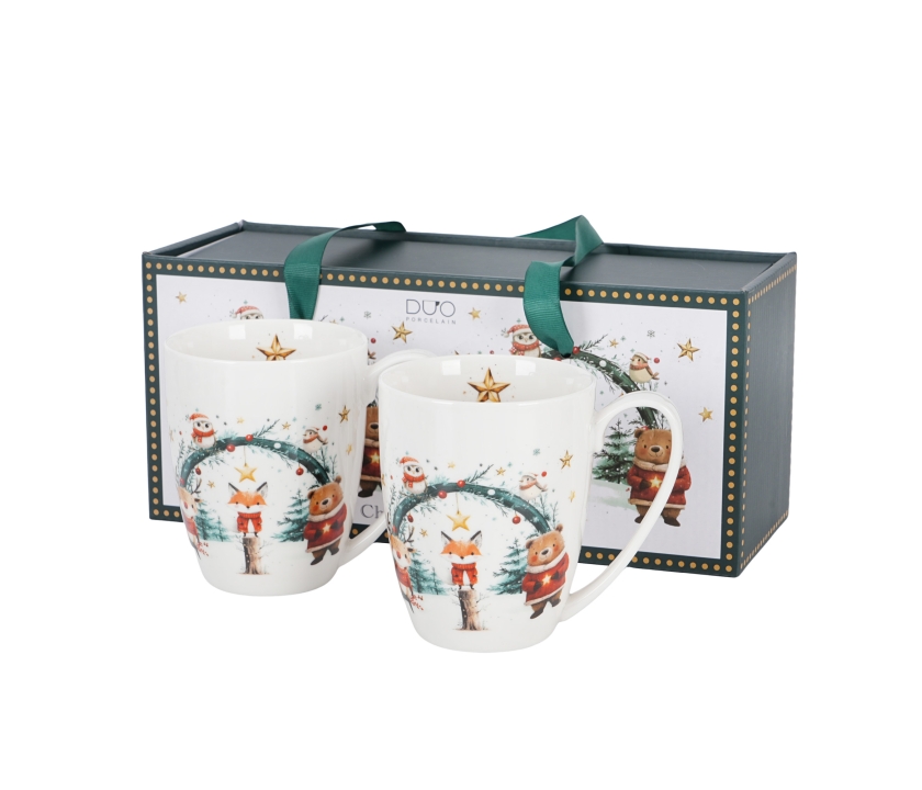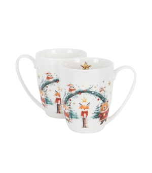 Sada dvoch klasických hrnčekov CHRISTMAS CUTIES 2 z vianočnej kolekcie, vyrobených z porcelánu New Bone China, ktoré sa vyznačujú elegantnou a prirodzenou krémovo bielou farbou s jemným leskom a zároveň výnimočnou odolnosťou.