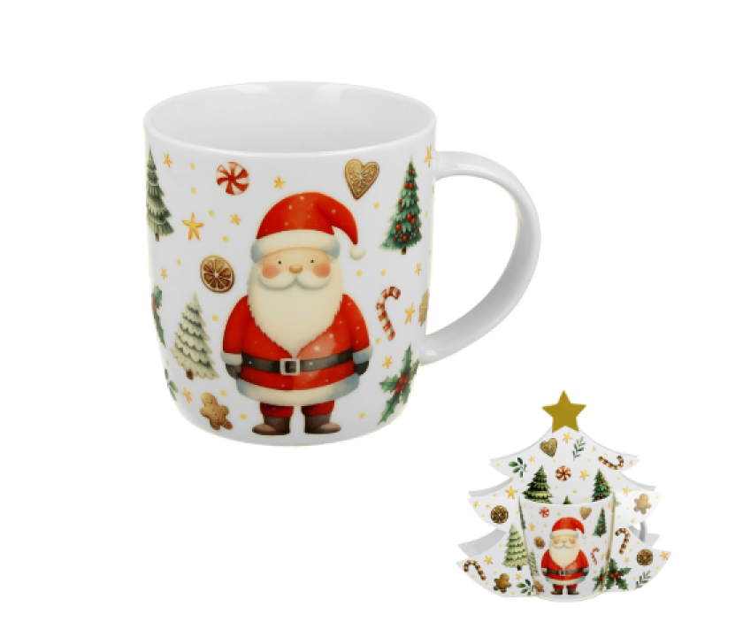 Hrnček SANTA CLAUSE „Christmas Tree“, ktorý je súčasťou vianočnej kolekcie, sa vyznačuje prírodnou krémovo bielou farbou s jemným leskom a výnimočnou pevnosťou a odolnosťou, pričom si zachováva ľahký a elegantný pocit.