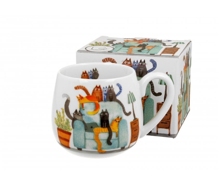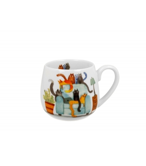 Hrnček Cat World CATS IN AN ARMCHAIR s objemom 430 ml, ktorý je súčasťou série Animals, je vyrobený z porcelánu New Bone China, ktorý sa vyznačuje prírodnou krémovo bielou farbou s jemným leskom a výnimočnou pevnosťou a odolnosťou, pričom si zachováva ľahký a rafinovaný vzhľad.
