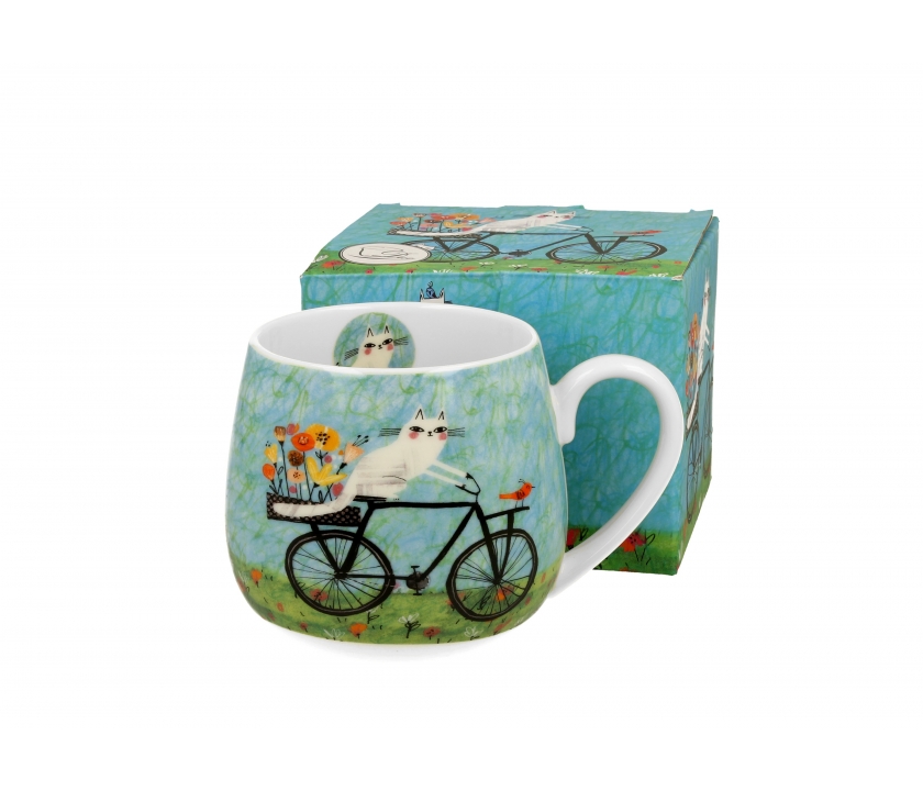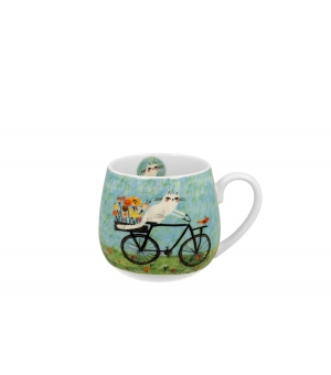 Hrnček Cat World - BIKE s objemom 430 ml, ktorý je súčasťou série Animals, je vyrobený z materiálu New Bone China, ktorý sa vyznačuje prírodnou krémovo bielou farbou s jemným leskom, výnimočnou pevnosťou a odolnosťou, pričom si zachováva ľahký a elegantný vzhľad.