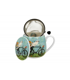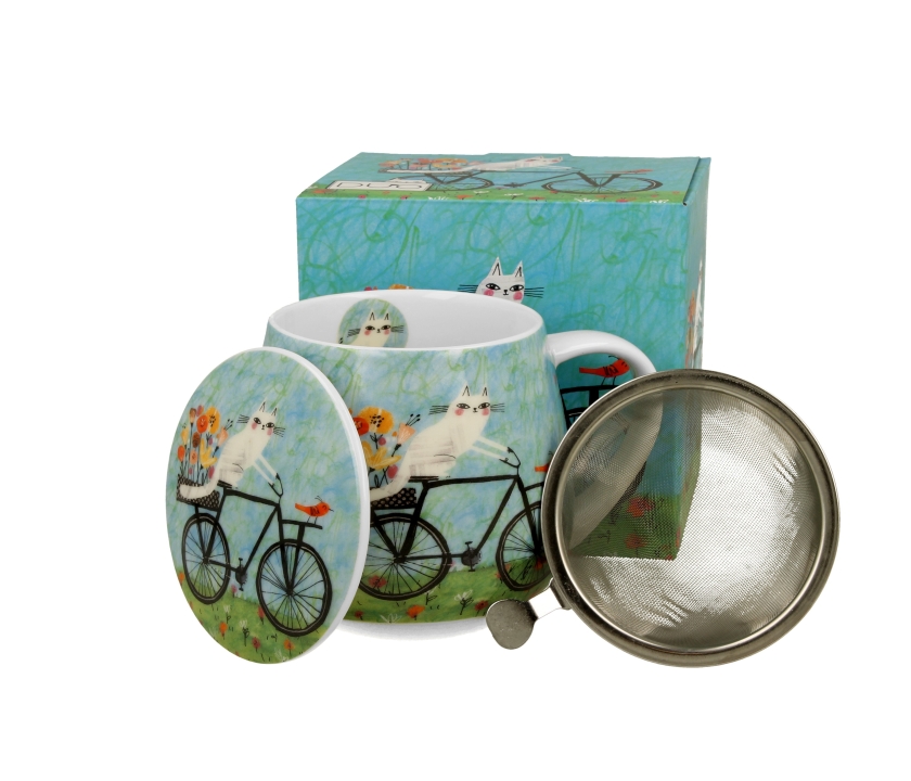 Hrnček Cat World - BIKE s objemom 430 ml, nálevníkom a viečkom, ktorý je súčasťou série Animals, je vyrobený z porcelánu New Bone China, ktorý sa vyznačuje elegantnou a prírodnou krémovo bielou farbou s jemným leskom a zároveň výnimočnou odolnosťou.