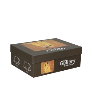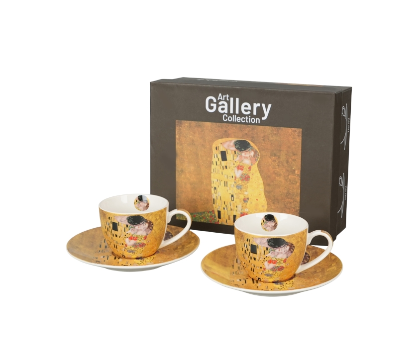 Sada dvoch šálok a podšálok na espresso s objemom 110 ml, inšpirovaná Gustavom Klimtom, je súčasťou série Art Gallery. Je vyrobená z porcelánu New Bone China, ktorý sa vyznačuje elegantnou a prirodzenou krémovo bielou farbou s jemným leskom a zároveň výnimočnou odolnosťou.