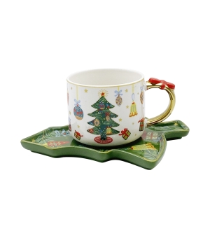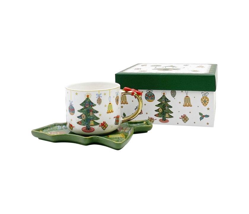 Šálka s podšálkou Around Christmas Tree, ktorá je súčasťou vianočnej kolekcie, je vyrobená z nového kostného porcelánu (New Bone China), ktorý sa vyznačuje elegantnou a prírodnou krémovo-bielou farbou s jemným leskom a zároveň výnimočnou odolnosťou.