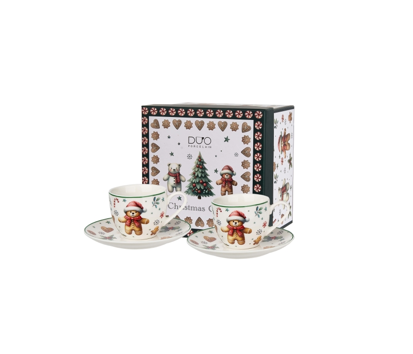Táto sada dvoch šálok a podšálok na espresso CHRISTMAS CUTIES, ktorá je súčasťou vianočnej kolekcie, je vyrobená z materiálu New Bone China, ktorý sa vyznačuje elegantnou a prírodnou krémovo bielou farbou s jemným leskom a zároveň výnimočnou odolnosťou.