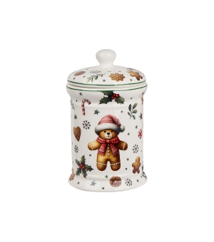 Dóza na sušienky CHRISTMAS CUTIES, ktorá je súčasťou vianočnej kolekcie, je vyrobená z porcelánu New Bone China, ktorý sa vyznačuje elegantnou a prírodnou krémovo bielou farbou s jemným leskom a zároveň výnimočnou odolnosťou.
