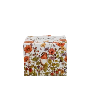 Kolekciu zdobí očarujúci fragment poľnej lúky, ktorej dominujú jarné kvety obklopujúce malého vtáčika. Jemné a decentné farby kolekciu jednoznačne odlišujú.