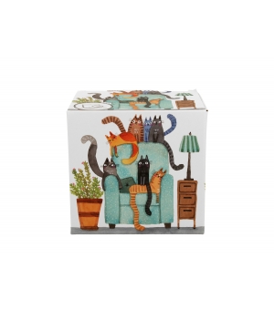 Líniu zdobí motív viacfarebných, nadýchaných a zaoblených domácich mačiek relaxujúcich vo veľkom kresle. Živé farby v kombinácii s hravou atmosférou vytvárajú vydarenú kompozíciu.
